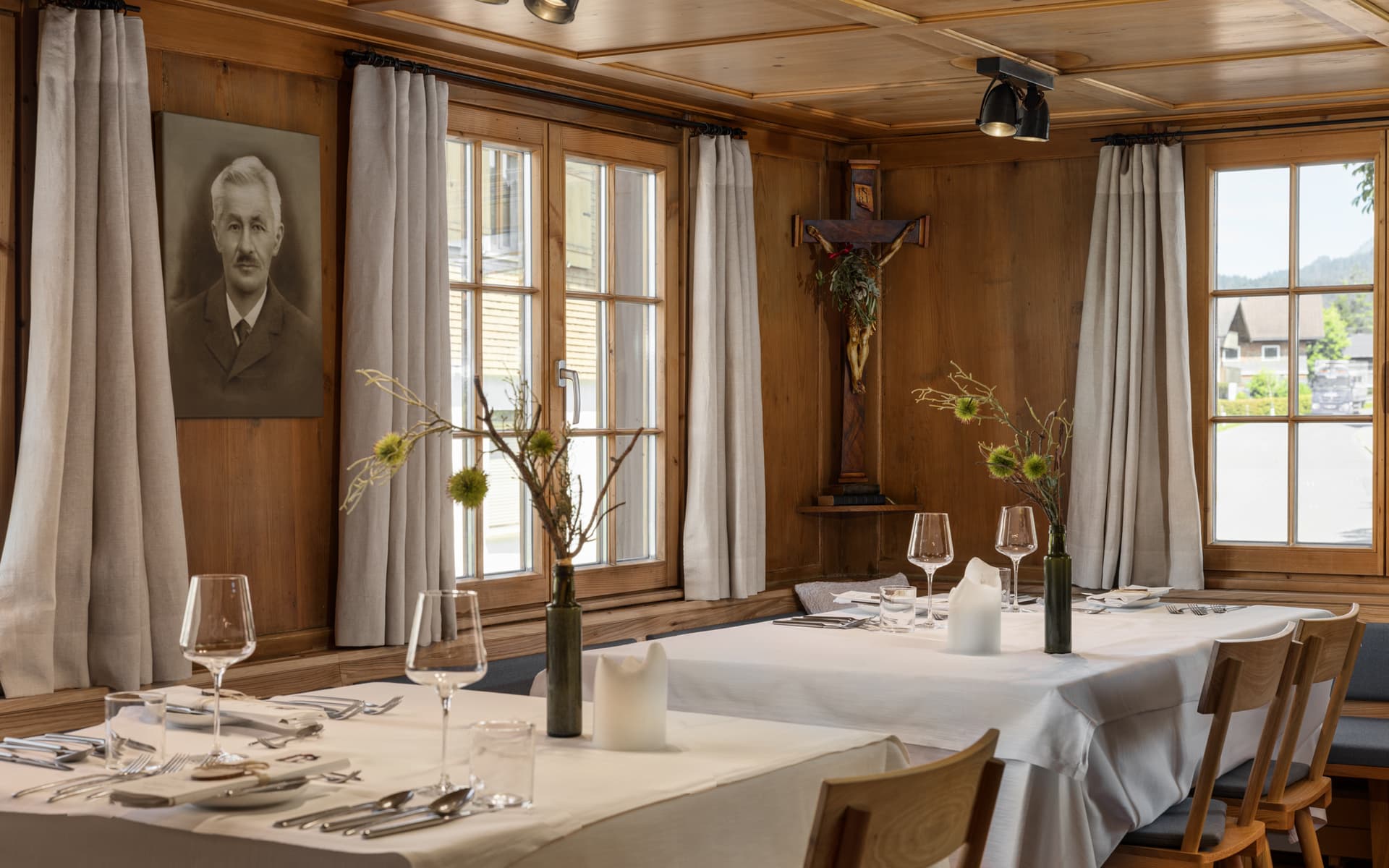 The cosy parlours in the main building from 1840 breathe the spirit of history. Today, "one of the best cuisines in Vorarlberg" is served up in the noble menu restaurant – Gault Millau has crowned the creativity and passion of our kitchen and service team with 3 toques! We are very proud!