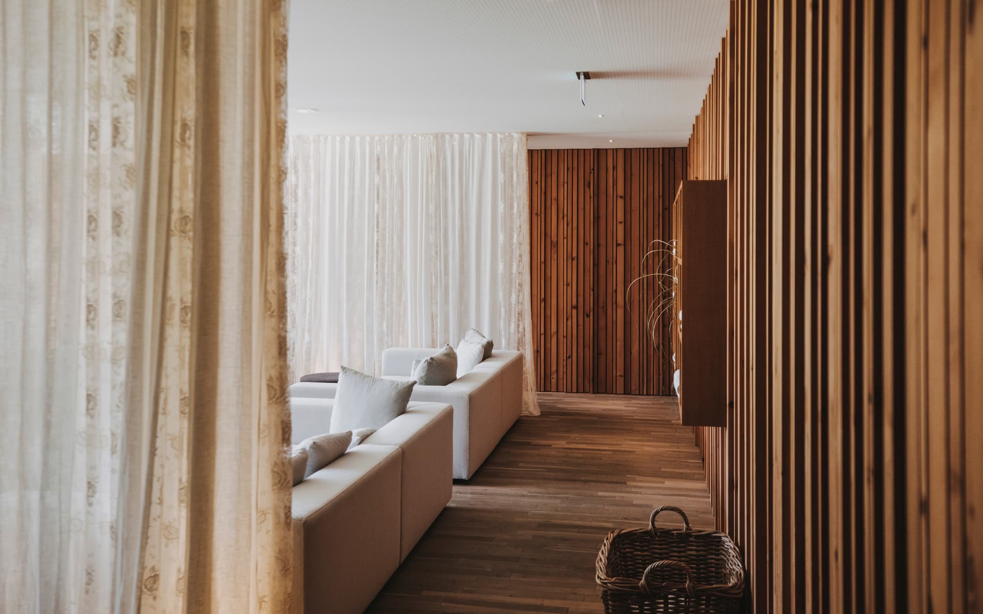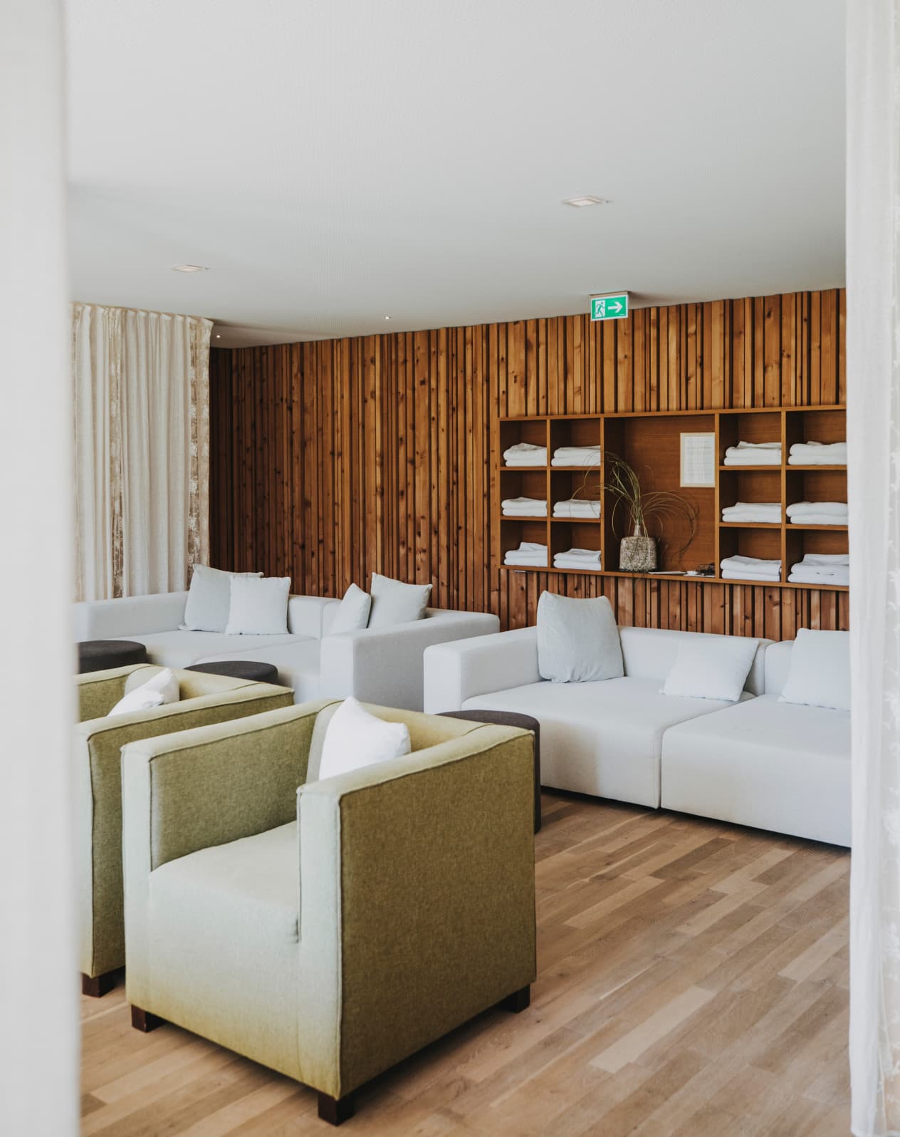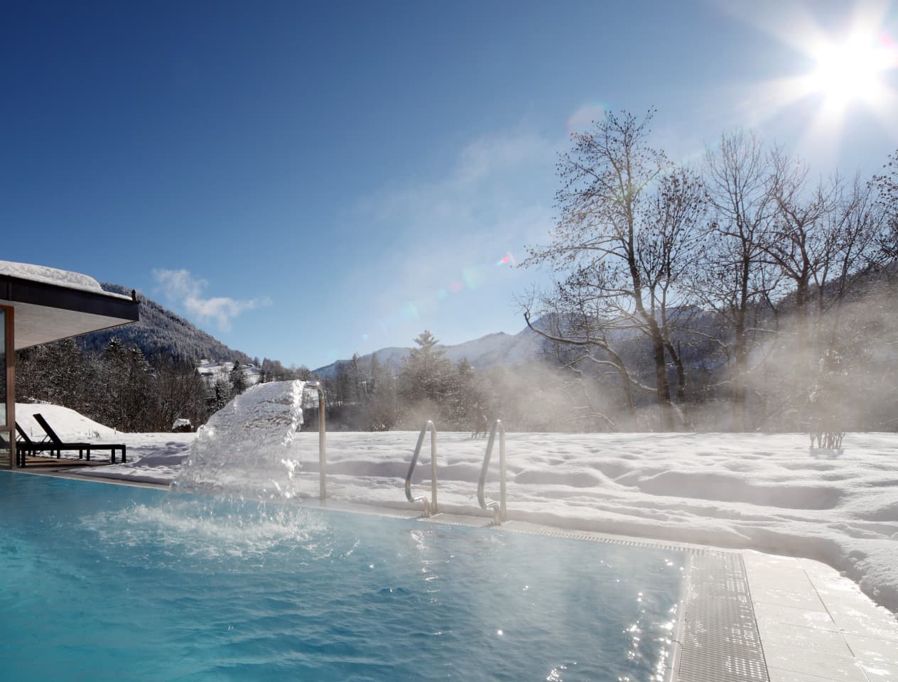 Lichtdurchfluteter Pavillon mit hochwertigen Magazinen zum Schmökern. Indoor-Einstieg zum beheizten Außenpool.