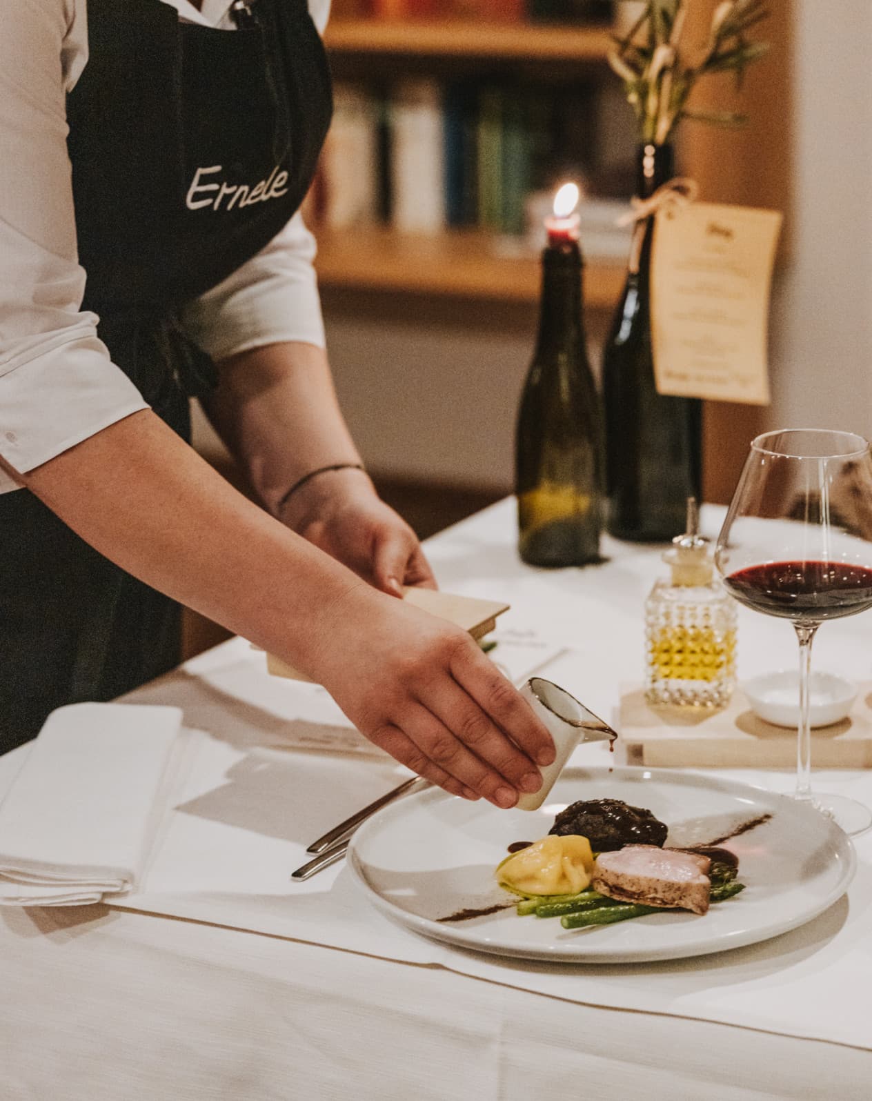 Gleich drei verschiedene Genuss-Schauplätze bringen viel Abwechslung: unsere beiden Restaurants sind mit insgesamt 5 Hauben Gault Millau prämiert: das Gourmetrestaurant „Wälder Stube 1840“ ist ein place to be für alle Genießer:innen des Fine dinings, in unserer Ladenwirtschaft „Ernele“ ist Regionalität und die Nähe zum Gast in einem modernen Wirtshausambiente gegeben. Die Hotelgäste genießen hohe Qualität im Rahmen der Verwöhn-Halbpension. Abwechslung garantiert.