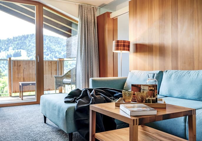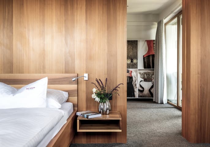 Gemütlichkeit und Ruhe sind Trumpf in der Suite 400. Vom obersten Geschoss des Stammhauses genießt man die Abendsonne am Balkon und genügend Platz zum Wohlfühlen ...