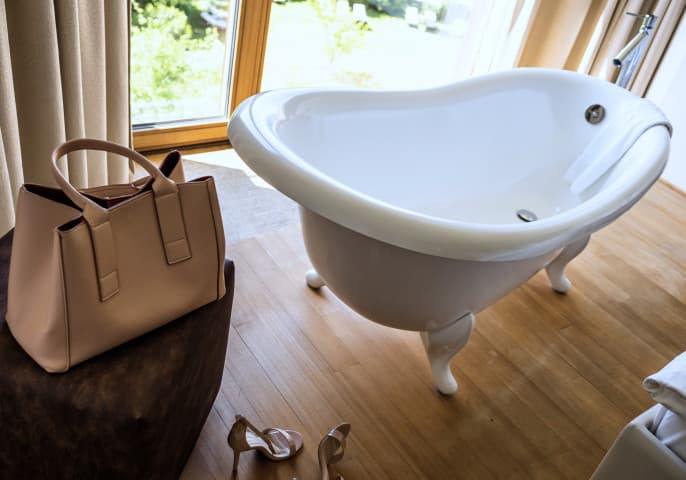 Our Suite 420 has many fans! The bathtub with a view, the quiet balcony to the large garden, the homely furnishings - this room is special!